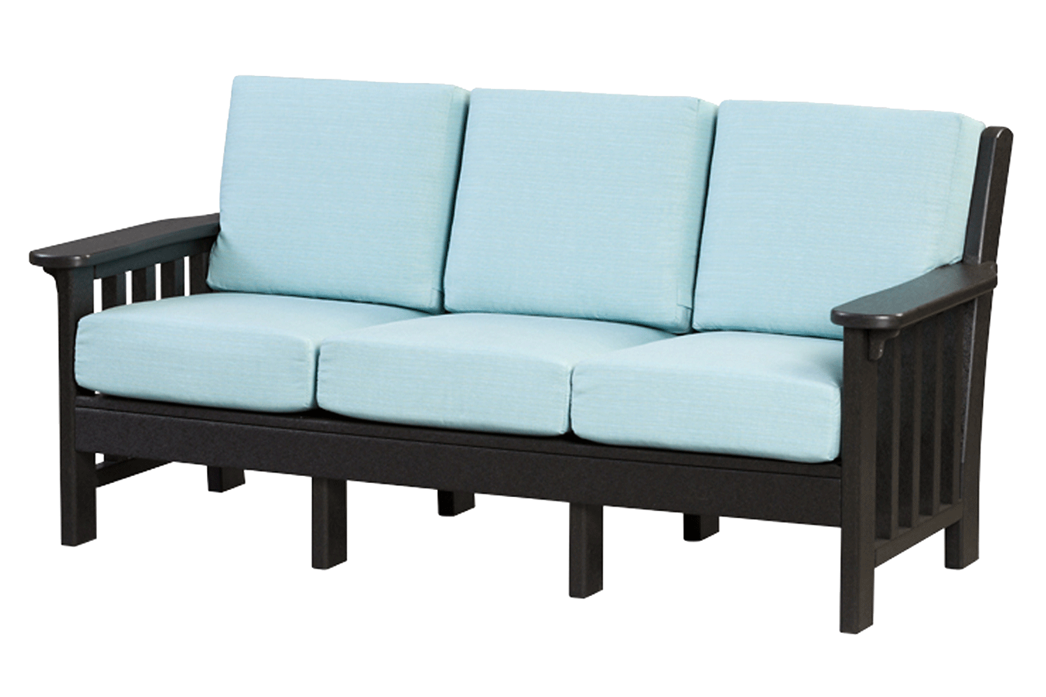 shown in Black with Canvas Air Blue cushions and WeatherWood/Brown with Davidson Redwood cushions