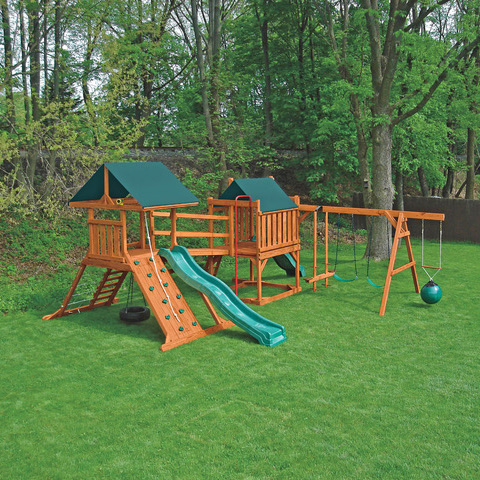 Because of the multiple options we have to pick from, having fun will be as simple as stepping out of your house. Give us the dimensions of your play area and we will help you maximize the options for learning and growth as we bring great style with our swing sets and help multiply the fun in your backyard. With our assortment we have the ability to customize a set for nearly any size backyard. For larger yards it is always fun to start with a double deck then customize with climbing elements to keep everyone moving.