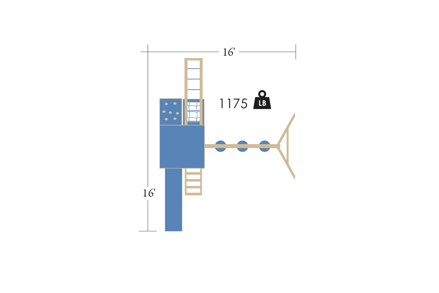 5' x 5' Mountain Climb with Monkey Bars and Single Beam Set
