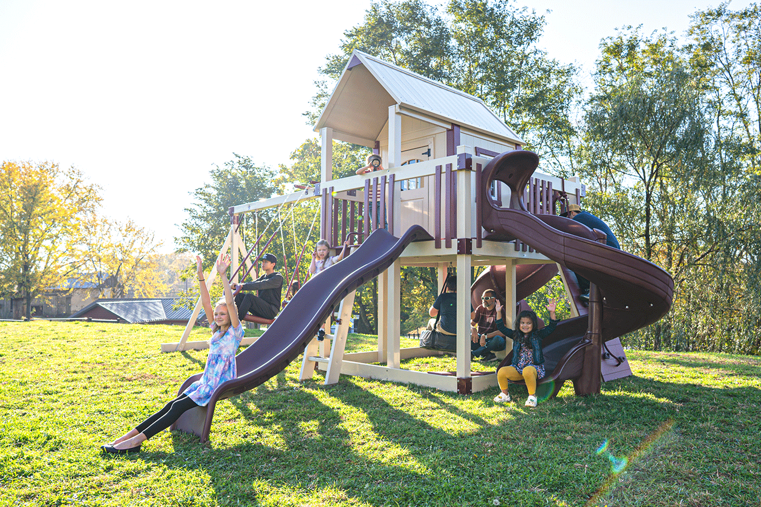 8' x 8' Playhouse with 7' Turbo Slide and 5' Spiral Slide